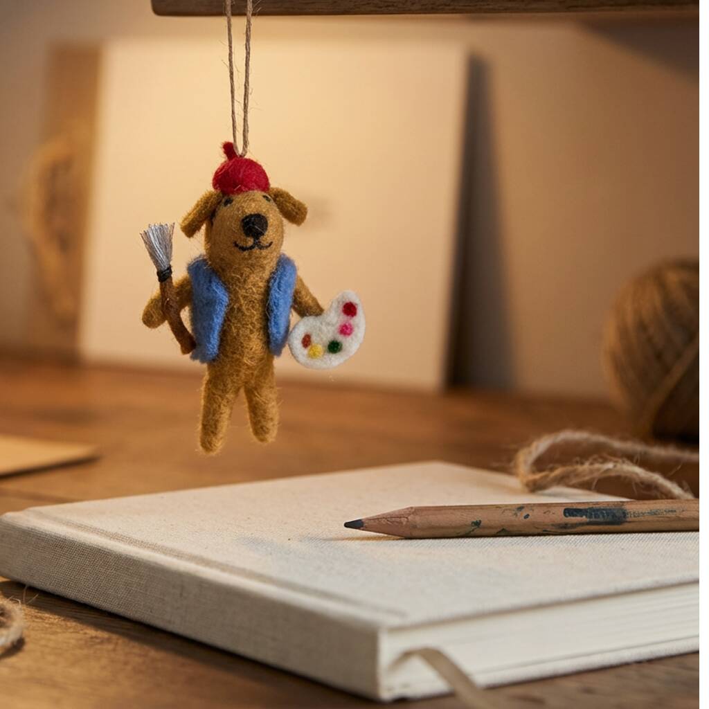 • Handmade Felt Painting Pooch Artist Dog Decoration, thumbnail 2 of 5