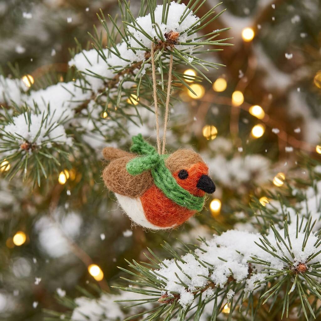 Robbie the Robin comes dressed for the winter with a knitted green scarf around his neck, perfect for perching on your tree this Christmas.