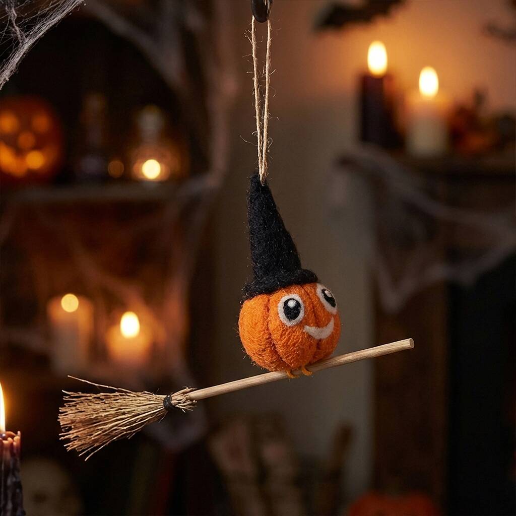 Handmade Felt Flying Pumpkin Halloween Decoration