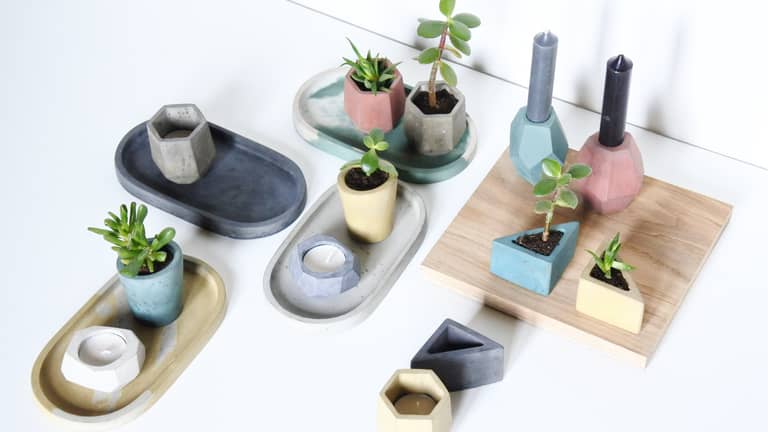 FERN homeware products form a cohesive range of pigmented concrete objects.