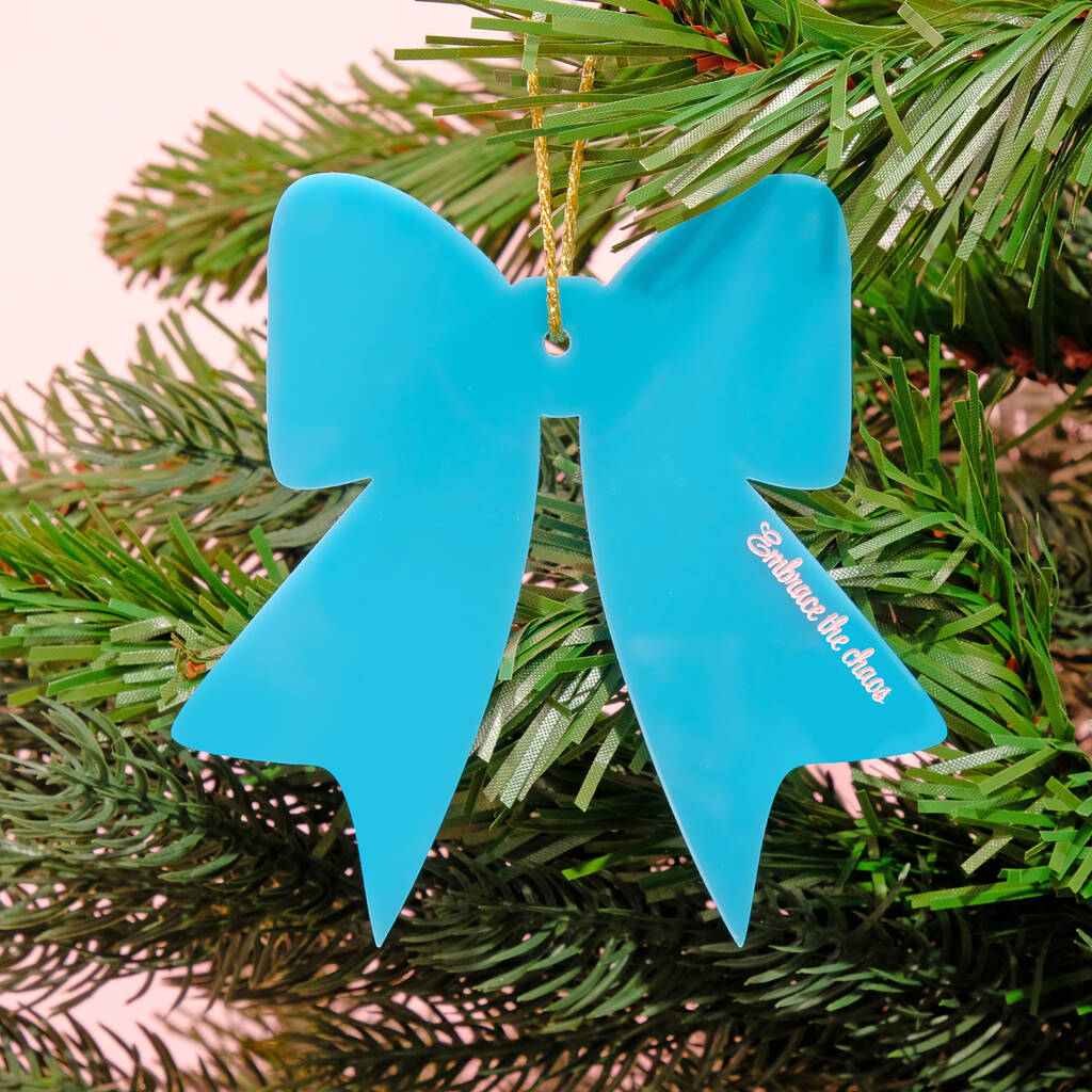 Embrace The Chaos Teal Christmas Bow Bauble Tree Decoration