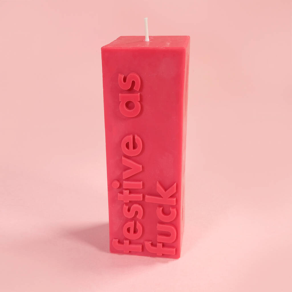 Festive As Fuck Christmas Slogan Block Pillar Candle