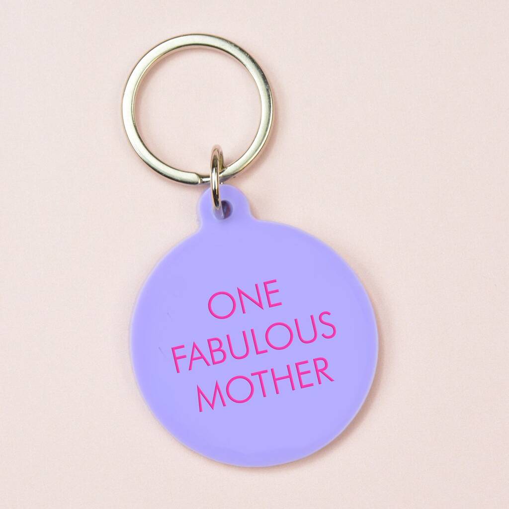 'One Fabulous Mother' engraved on lilac acrylic with pink engraving and silver keyring.