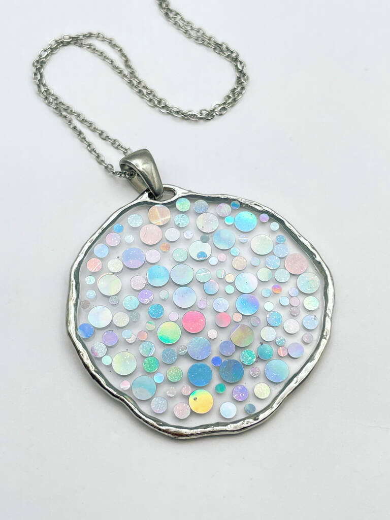Medium Disco Necklace With Holographic Silver Sparkles