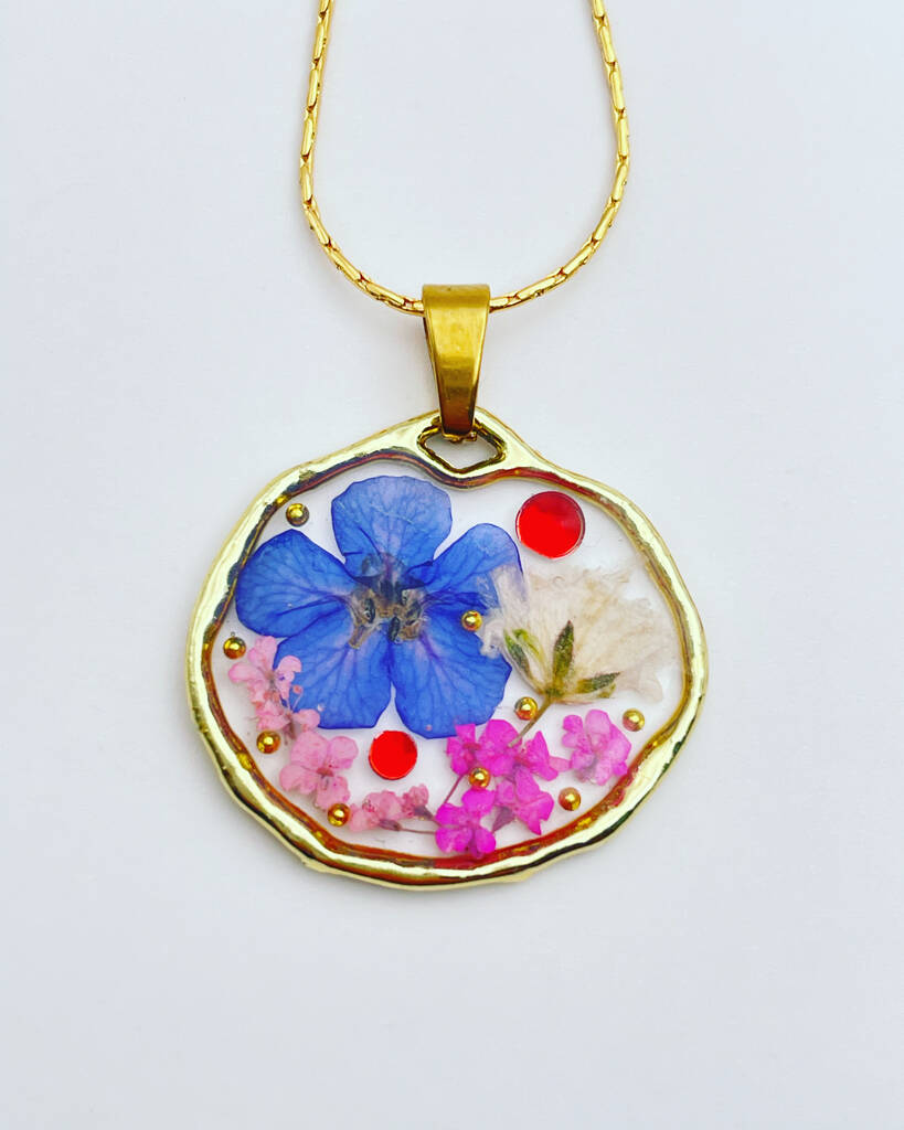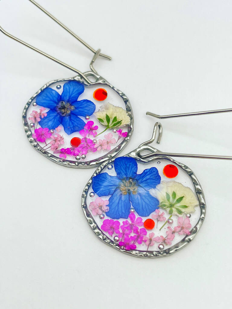 Earrings With Blue And Pink Flowers In Silver Or Gold