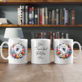 Personalised Samoyed Summer Floral Dog Wreath Gift Keepsake Mug