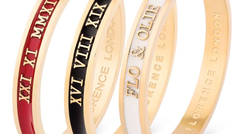 Florence London Jewellery’s Signature Cuff lets you personalise your bracelet with your initials or anniversary