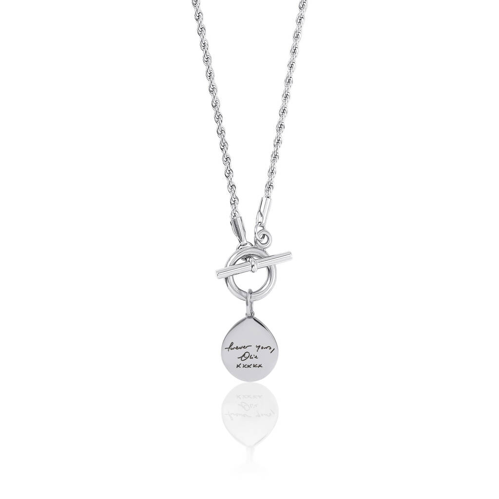 Engrave a loved ones handwriting on this stunning necklace. Upload a picture of their writing and we'll turn it into a beautifully engraved piece.