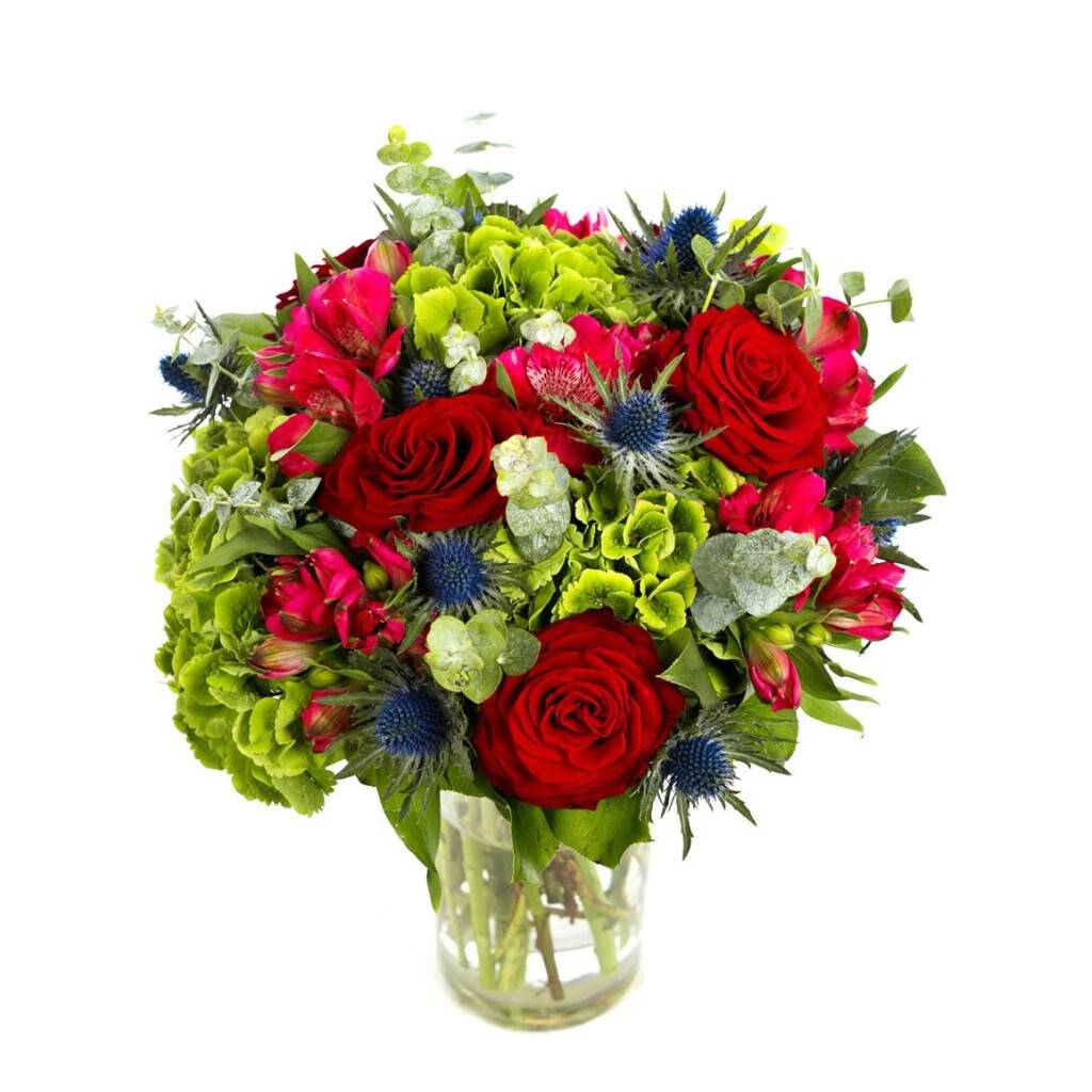 Blue Eryngium, Rose And Green Hydrangea Bouquet