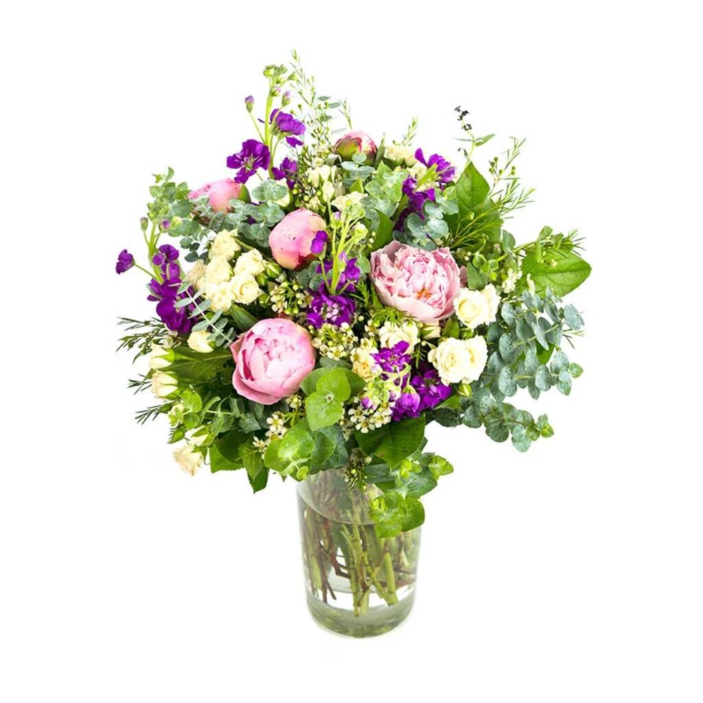 Fresh Pink Peonies And Lavender Bouquet