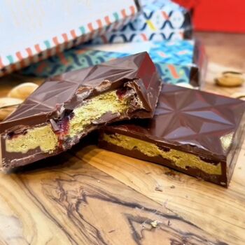 Pistachio Spread And Kanafa Crunch Belgian Stuffed Chocolate Bar