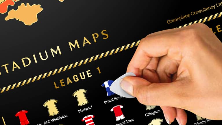 Fast forward 12 months, lockdown over and the map is finally complete. Each stadium image painstakingly hand drawn in detail.