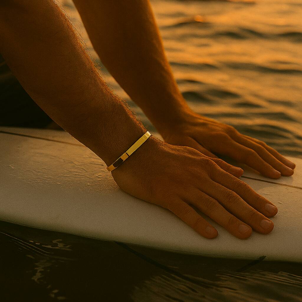 A luxurious blend of minimalist design and refined craftsmanship. Crafted from solid titanium with an 18K gold-plated finish.