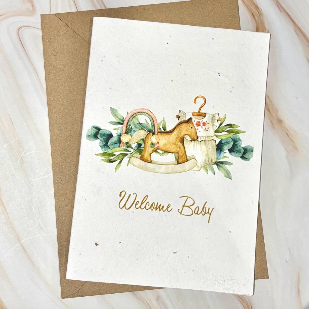 Welcome a new little life with a card that grows! Gift something unique, with a card made from plantable wildflower seed paper.This eco-friendly card is printed on plantable wildflower seed paper, making it a beautiful and sustainable way to celebrate a new baby, baby shower, or first birthday. The recipient can plant the card and watch wildflowers bloom — a lasting reminder of love and new beginnings.
