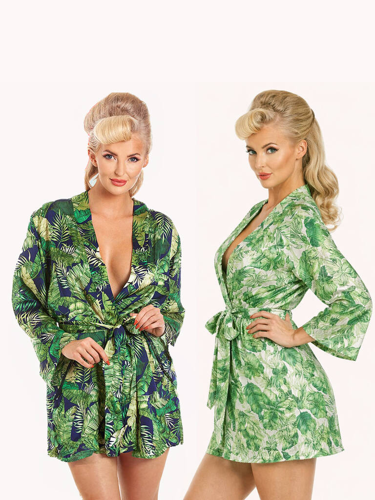Fern Print Satin Wrap Dressing Gown