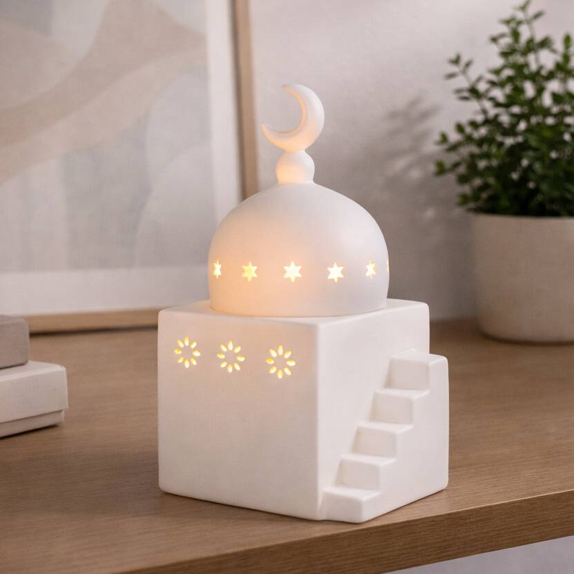 White mosque muslim home decor - perfect for thoughtful Eid gifts for friends and family. Use with fragrance oil, incense cones, bakhoor, or tealight.