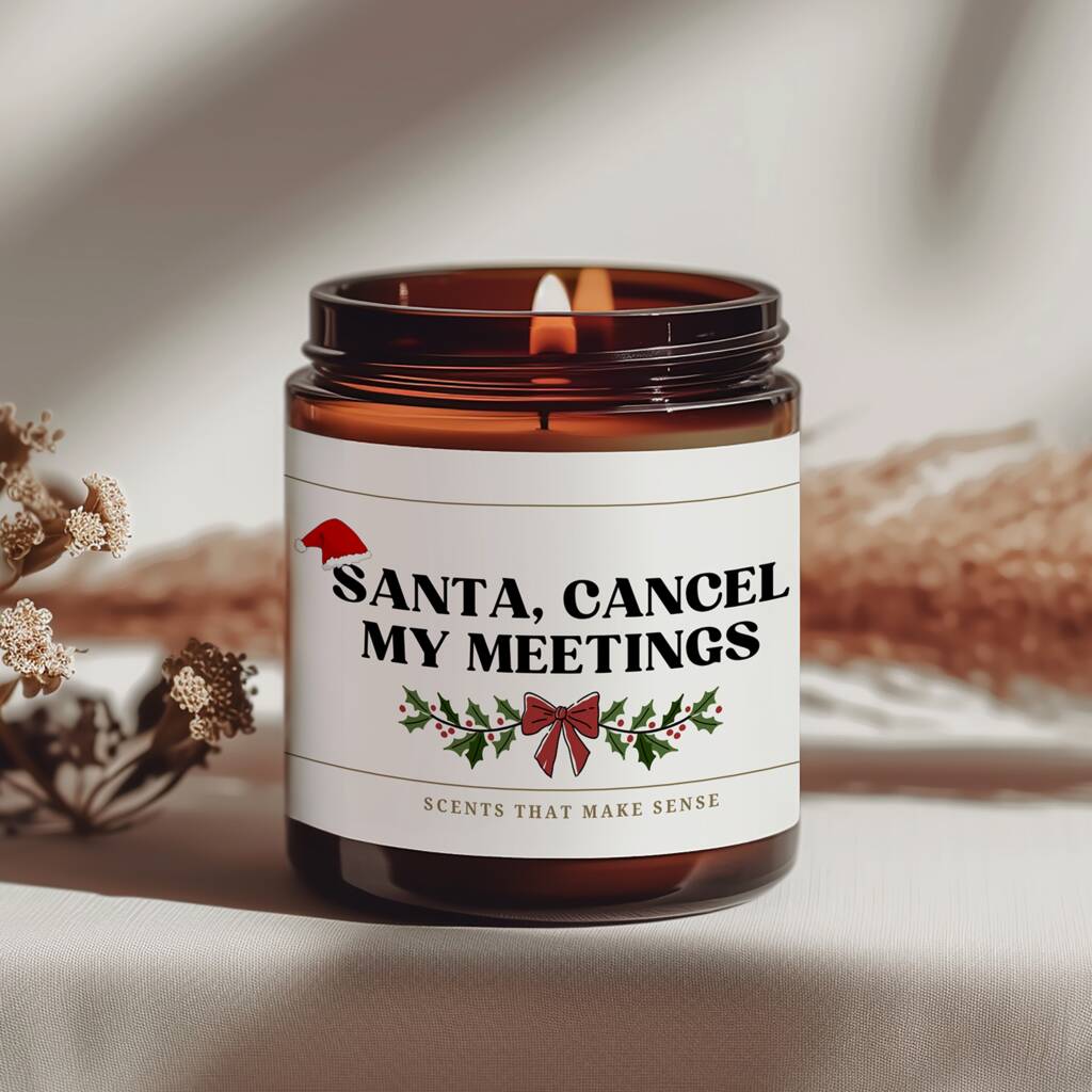 Funny Christmas gift for colleagues, managers, office Secret Santa, work friends and anyone tired of endless Zoom calls - Santa, cancel my meetings scented candle