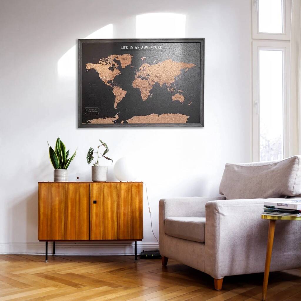 The wooden frame and cork backing make the maps a stylish keepsake home decor or office for travellers. Record your visited countries and plan your next adventures in style.