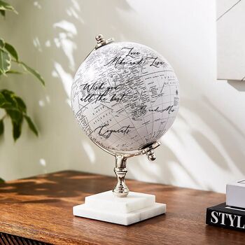 Wedding Globe Guestbook Alternative Marble White Travel Globe