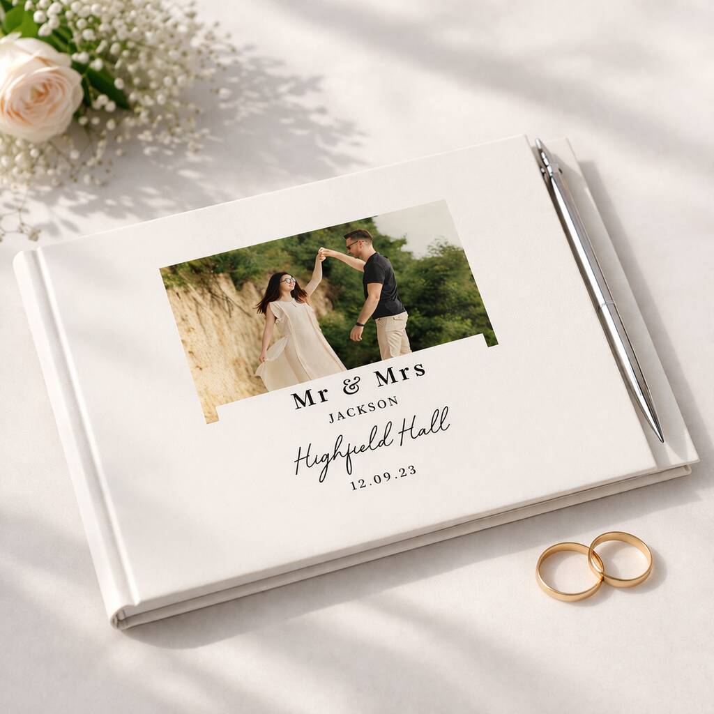 Wedding Guest Book And Pen, White Linen