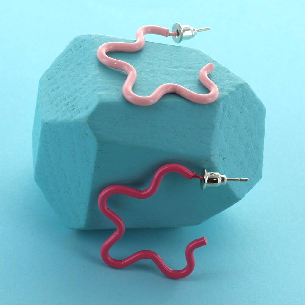 A fun pair of flower outline enamel earring each in a slightly different shade of Pink.Delicate yet playful, these mismatch earrings feature airy flower outlines filled with glossy pink enamel. Each earring offers a slightly different floral colour silhouette, creating an intentionally mismatched look that feels modern and artistic. Lightweight and eye-catching, the vibrant pink enamel adds a fresh pop of colour while the outlined design keeps the style elegant and easy to wear. Perfect for everyday outfits or as a subtle statement for special occasions. A free gift wrapping service is available upon request.