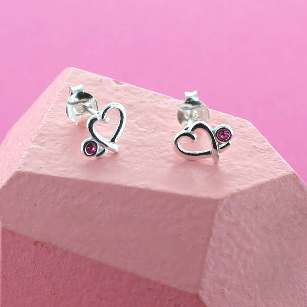 A stunning pair of sterling silver crossover heart earring with a small detail of pink crystal.Delicate and romantic, the sterling silver stud earrings feature sparkling pink crystal hearts that catch the light with every turn. Set in 925 sterling silver, the soft blush hue adds a feminine touch, perfect for everyday wear or special occasions.