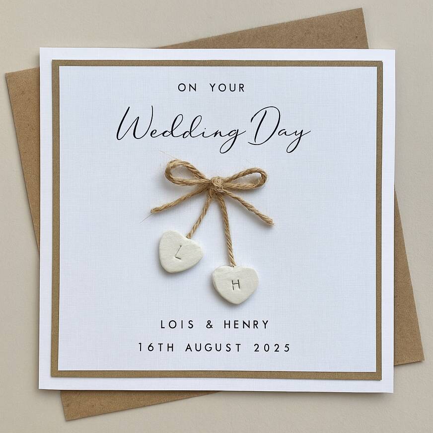 Personalised Wedding Day Card With Initial Stamp Hearts