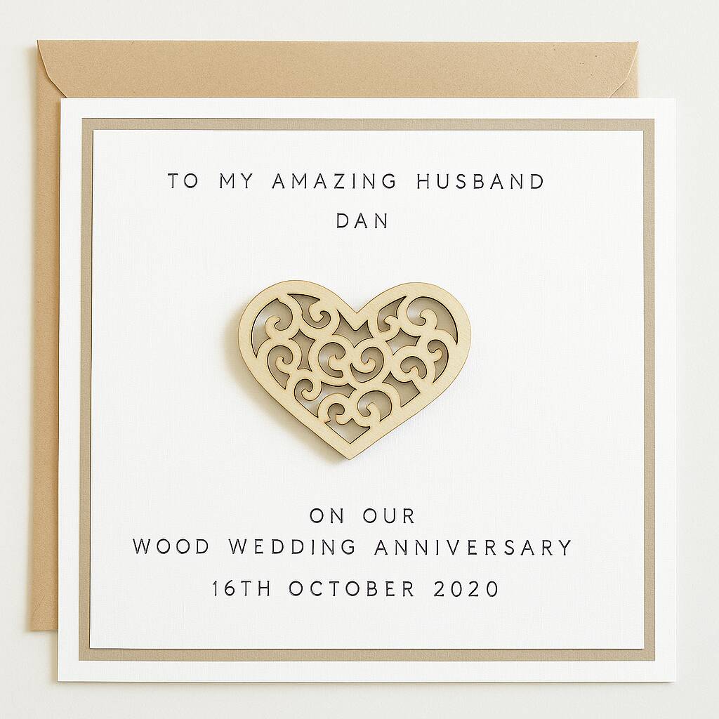 Personalised Wood 5th Anniversary Card For Husband Or Wife Wooden Heart
