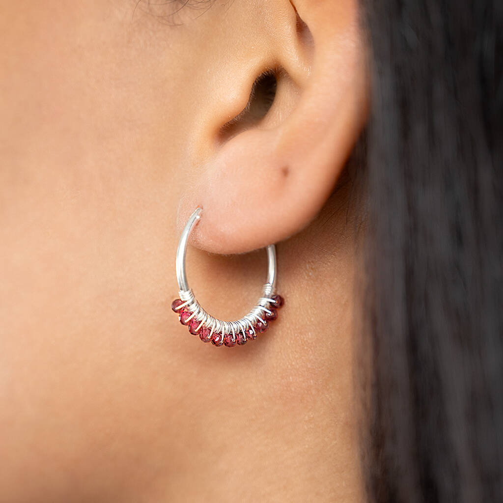 Garnet Gemstone Sterling Silver Hoop Earrings