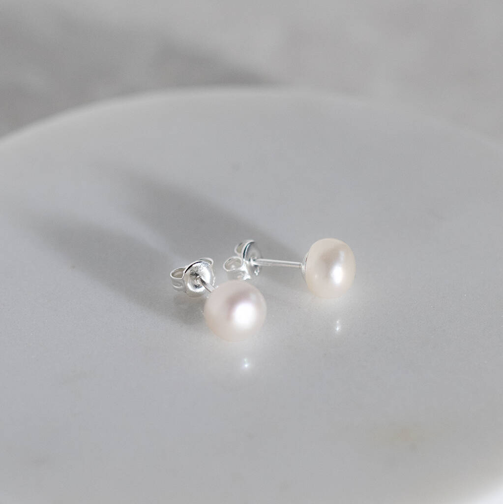 Silver Freshwater Pearl Stud Earrings