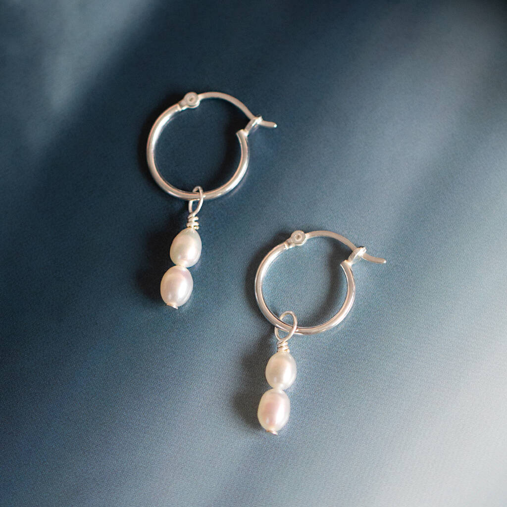 Sterling Silver Double Pearl Charm Hoop Earrings