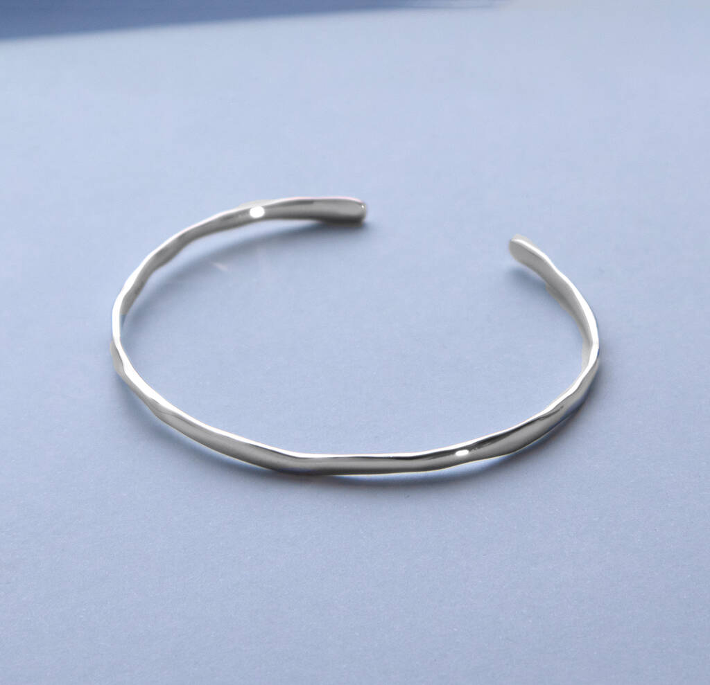 Sterling Silver Hammered Molten Cuff Bangle