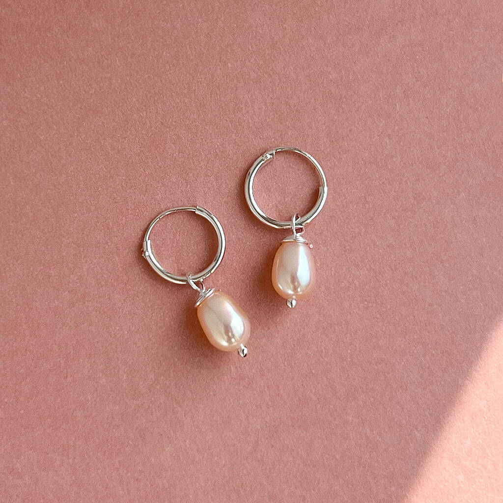 Sterling Silver Small Hoop And Pearl Earrings