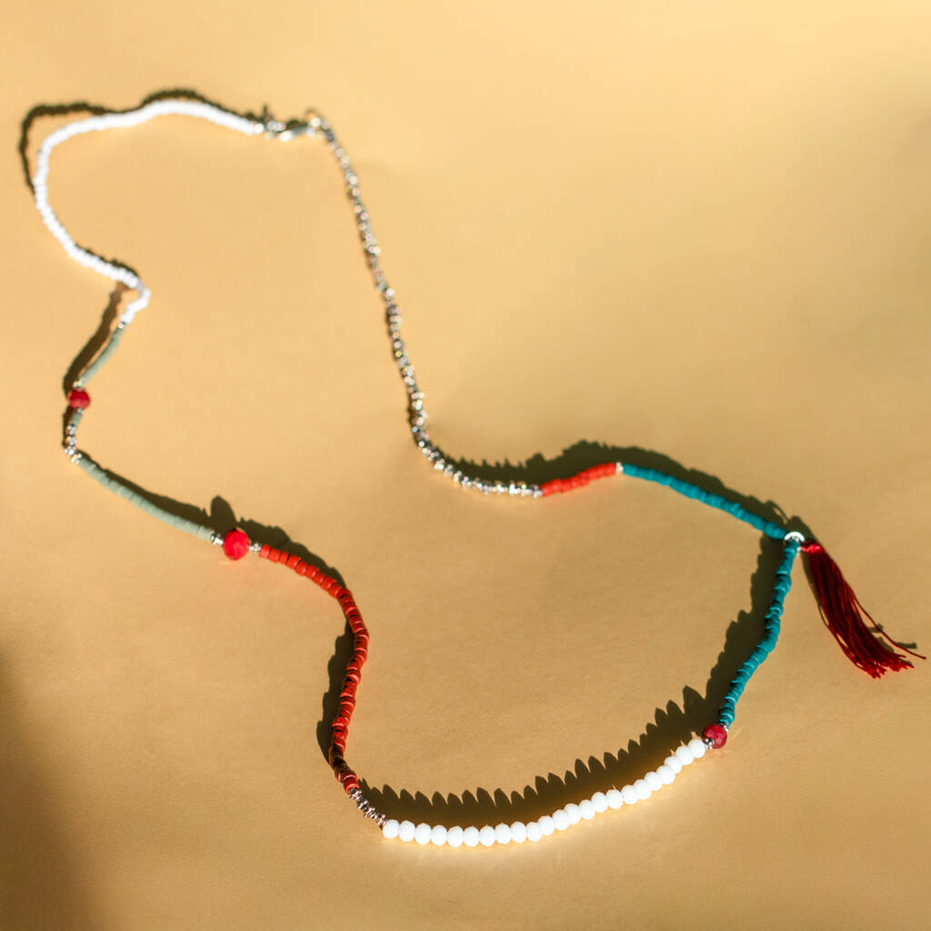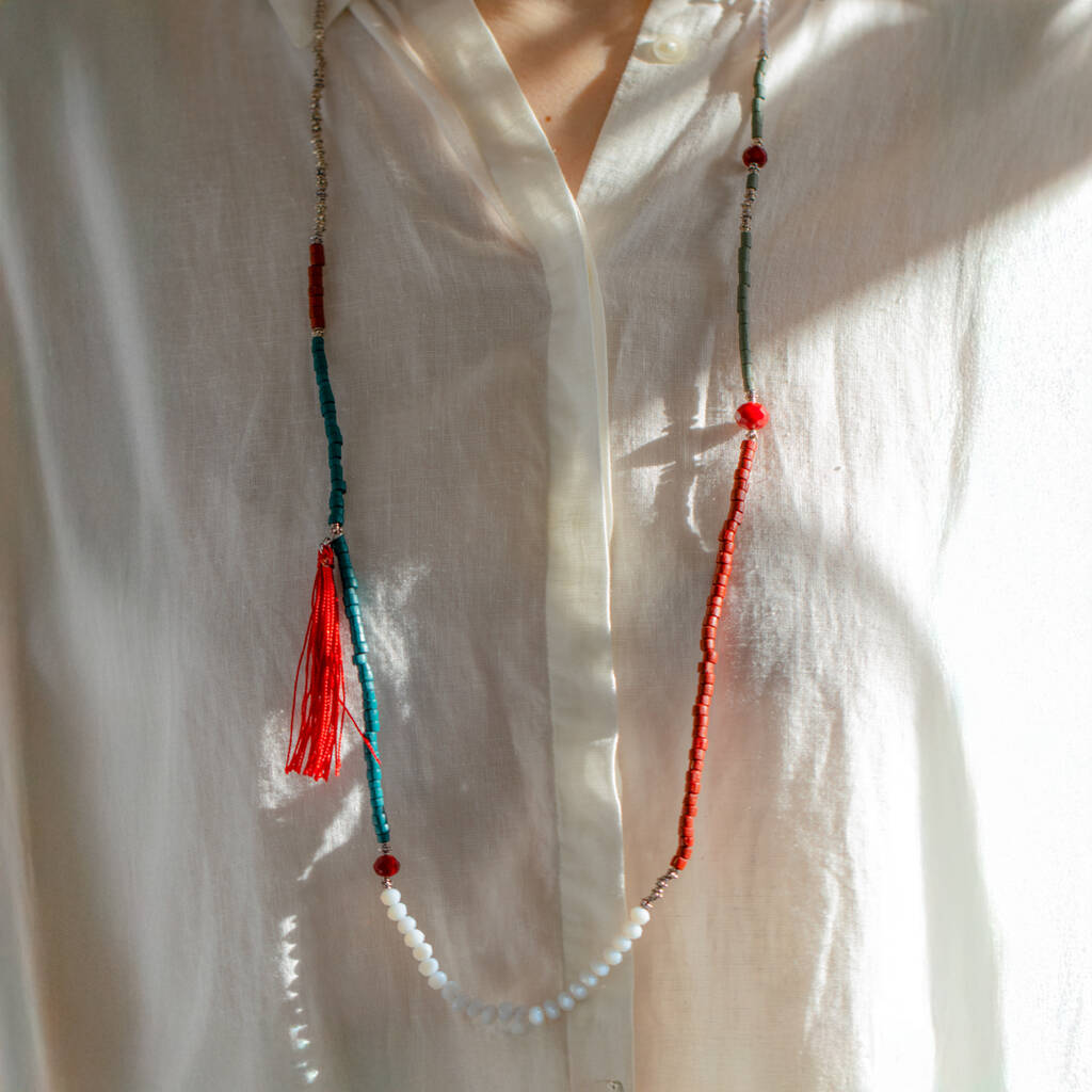 Colourful Bead Tassel Long Necklace