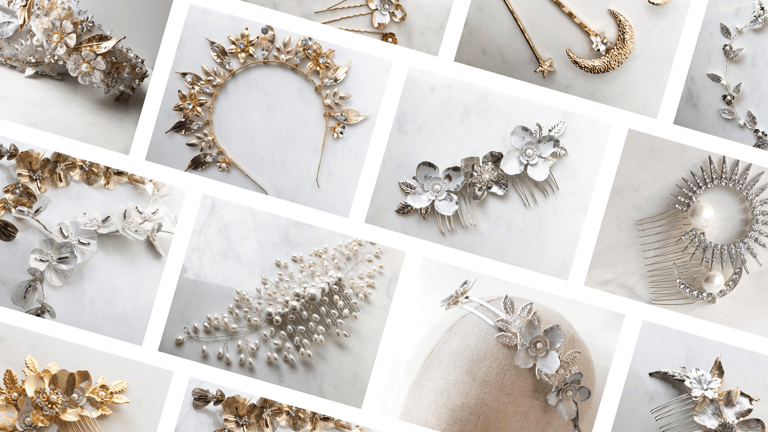 From elegant florals to dreamy celestial touches, these designs are for those who appreciate exquisite detailing & quality craftsmanship, from opulent hairpieces, couture bridal belts to eye-catching earrings and intricate garters that will be treasured and worn in the most beautiful way.