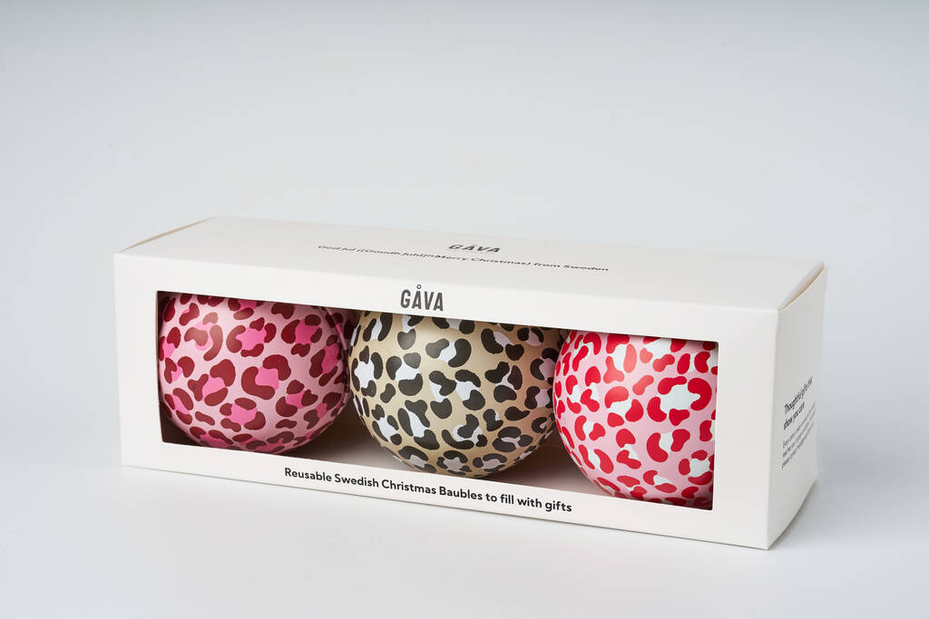 Trio Of Baubles In Swedish Design Filled With A Choice Of Swedish Chocolates, Swedish Candy Or Chocolate Truffles, Glögg + Carola + Kalle