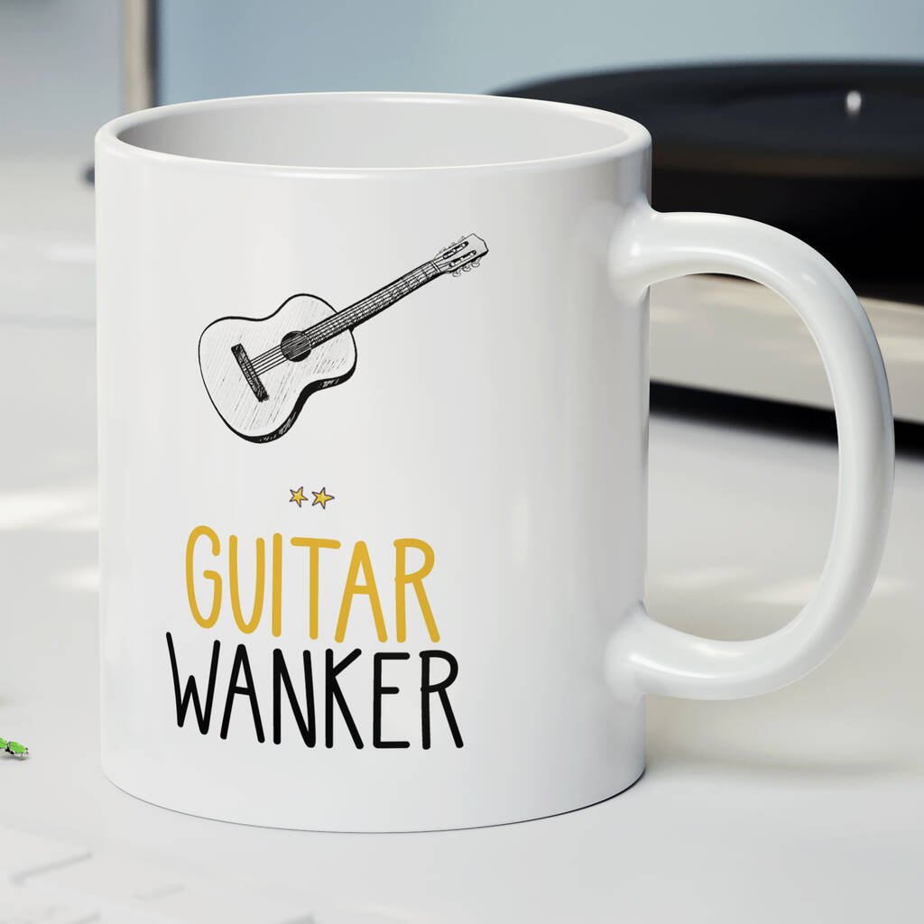 Novelty Funny And Rude 'Guitar Wanker' Gift Mug, Guitarist Teacher, Birthday Present