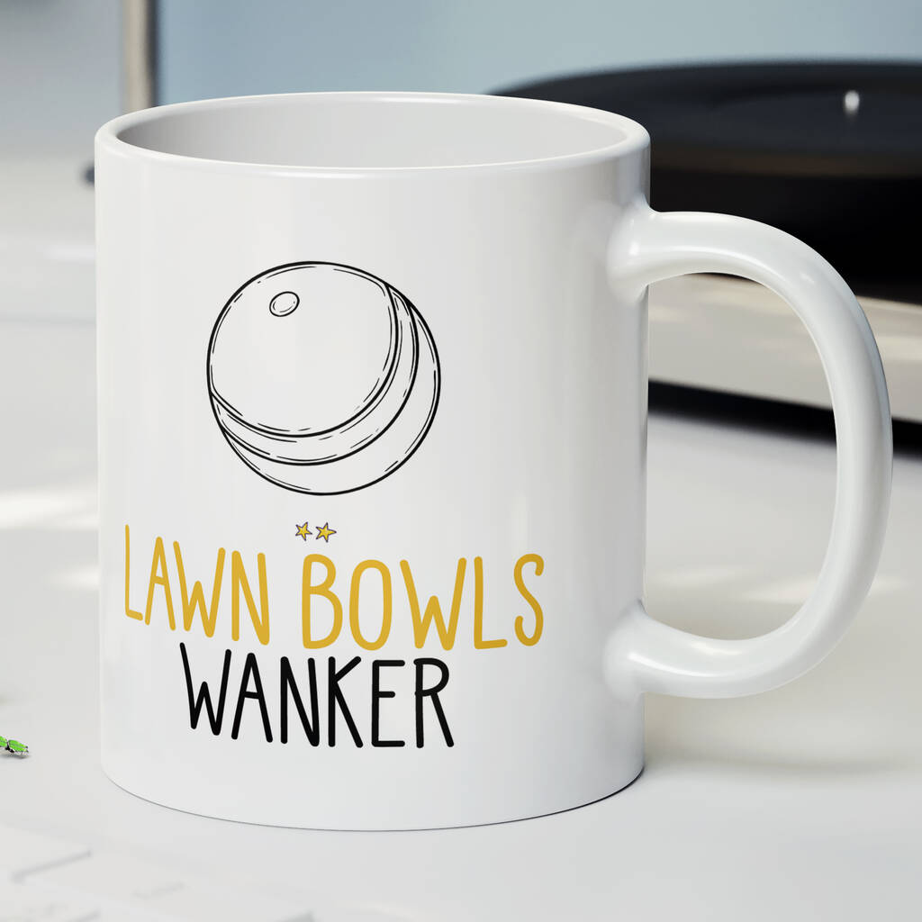 Novelty Funny And Rude 'Lawn Bowls Wanker' Gift Mug, Bowls Hobby, Grandparents, Birthday Present