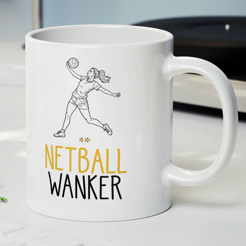 Novelty Funny And Rude 'Netball Wanker' Gift Mug, Netball Player Birthday Present