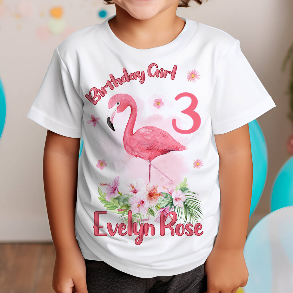 Girls Personalised Flamingo Theme Birthday T Shirt