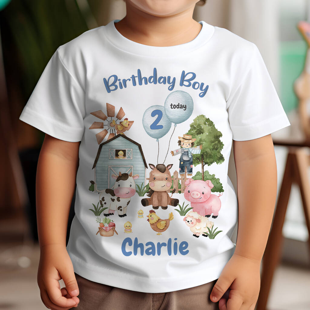 Kids Personalised Cute Farm Animals Birthday T Shirt