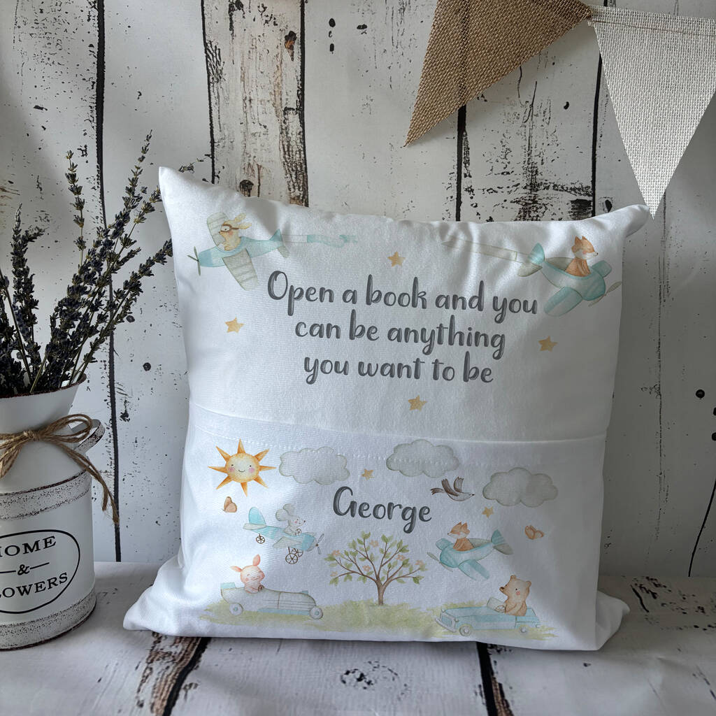 Kids Pocket Pillow Cushion: Cars, Planes And Animals Reading Nook Decor