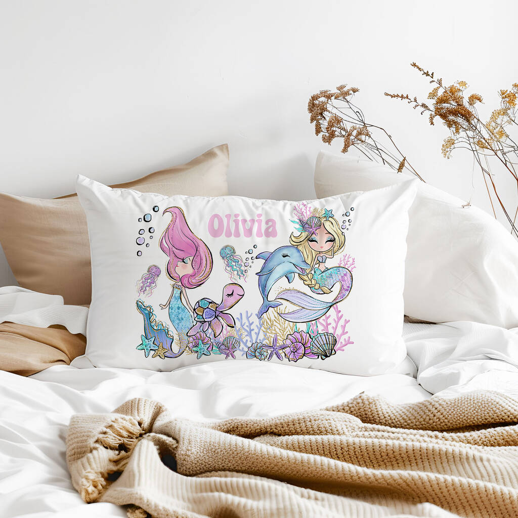 Personalised Mermaid Name Pillowcase Kids Under The Sea Pillow