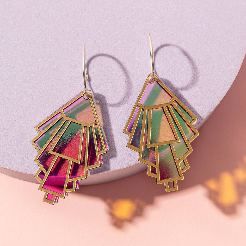 Bursting with Art Deco vibes these statement fan hoop earrings have a timeless quality.