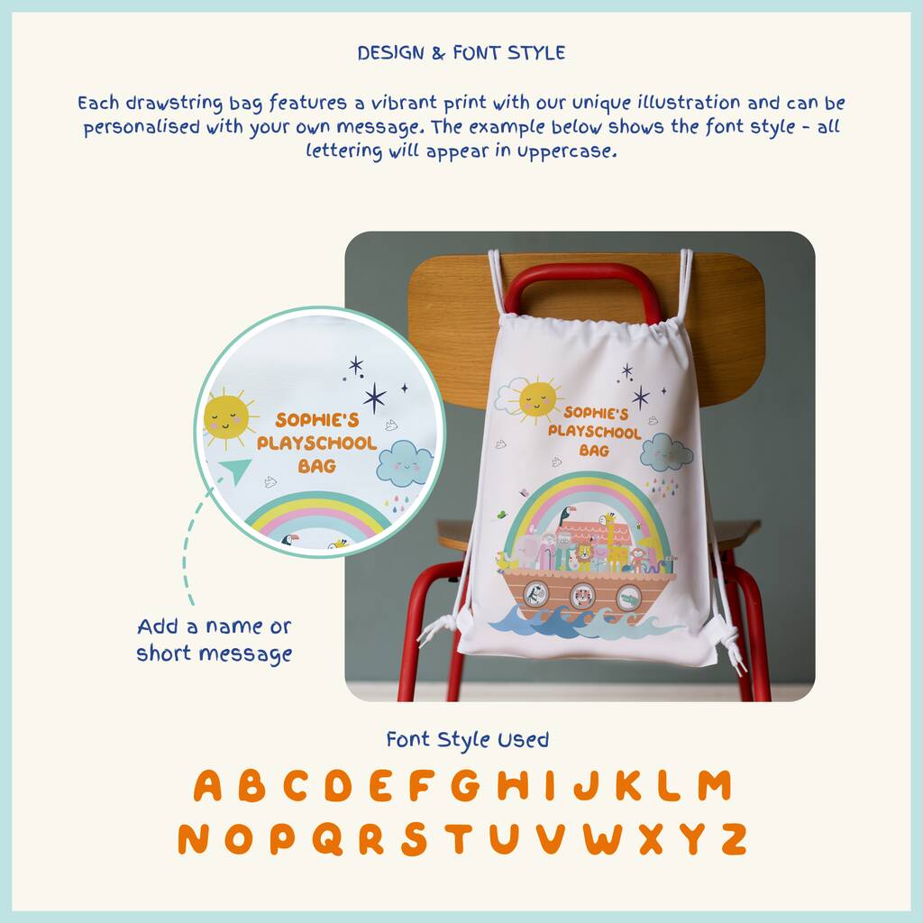 Personalised Noah’s Ark Drawstring Bag – Kids’ Toy Or Nursery Bag