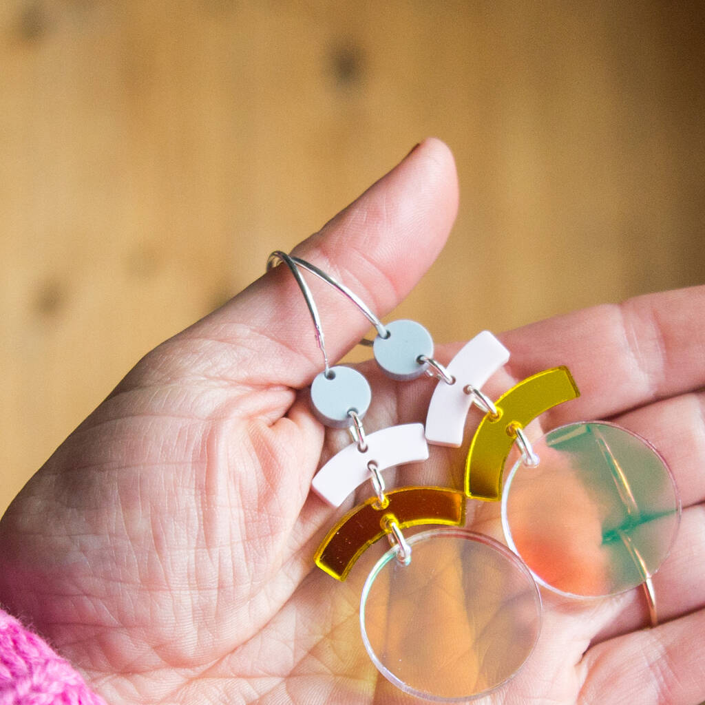 Sterling Silver Geometric Iridescent Drop Hoop Earrings