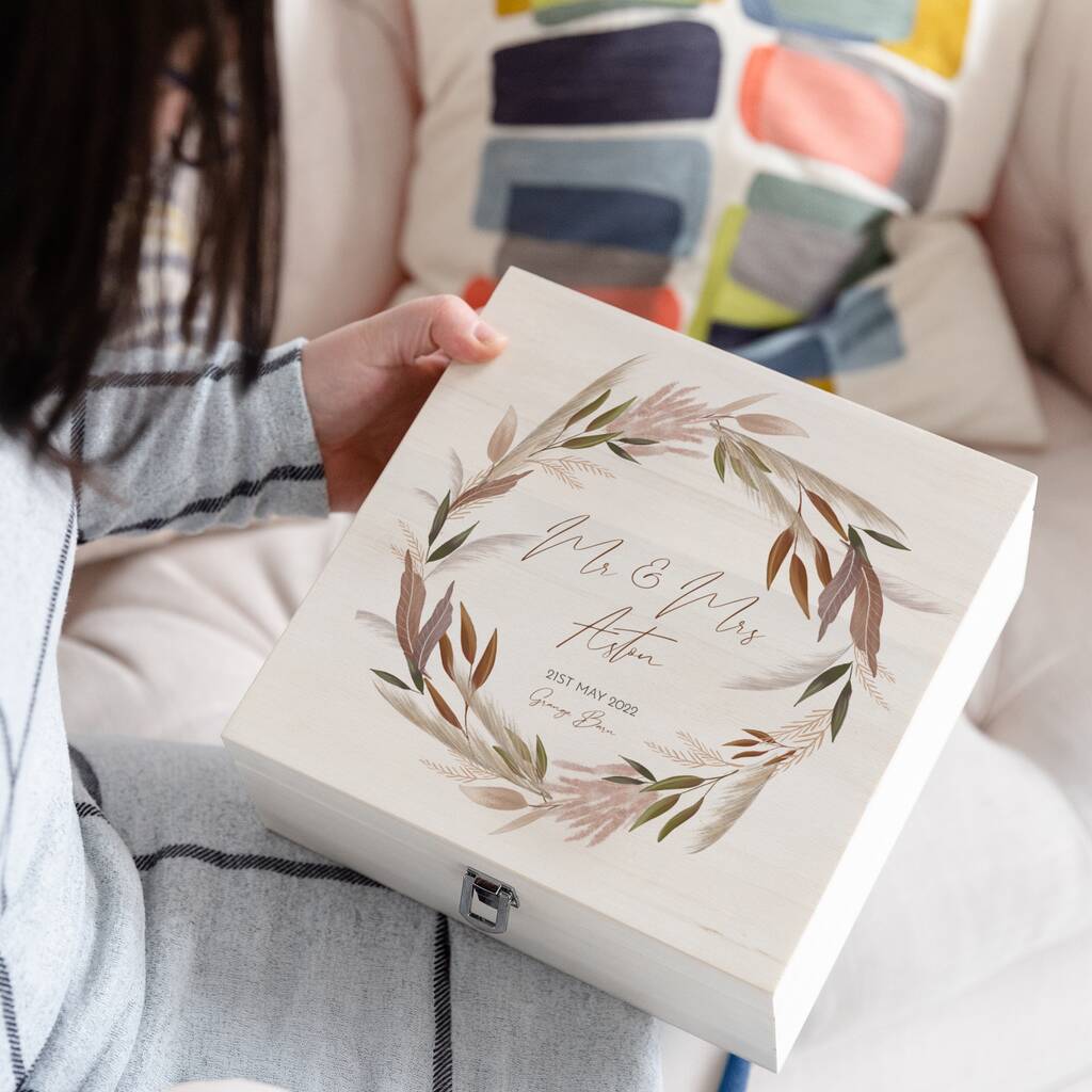 Wooden Pampas Wreath Wedding Keepsake Gift Box