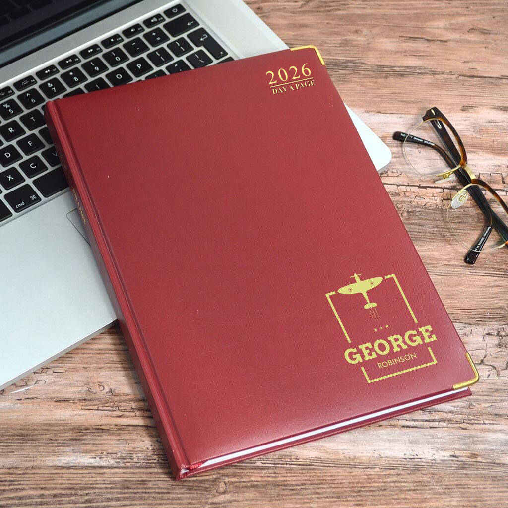 Elegantly designed personalised 2026 diary featuring a Spitfire silhouette design.