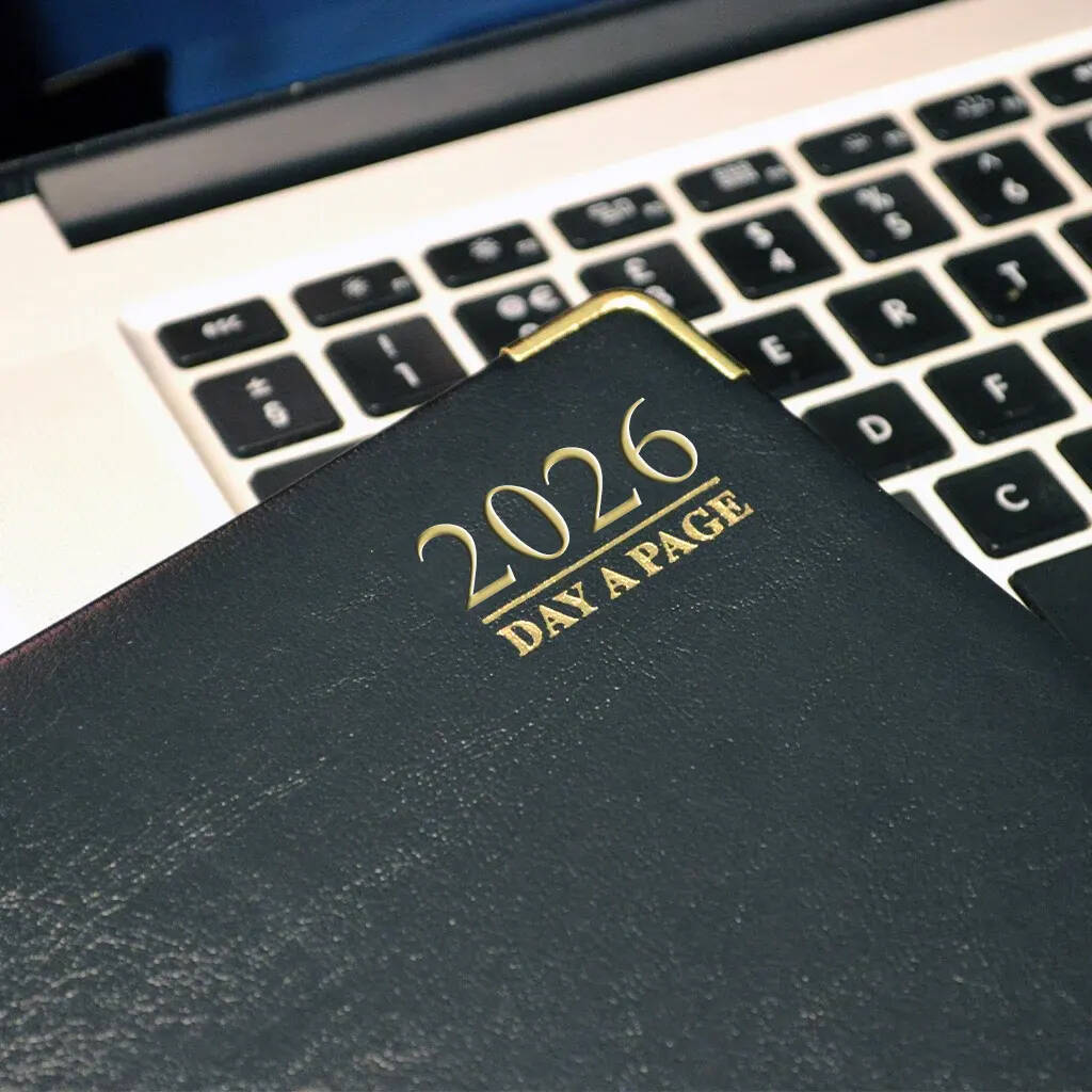 Each diary features a day-to-a-page layout, gold foil detailing, and metal corner protectors for a luxurious finish