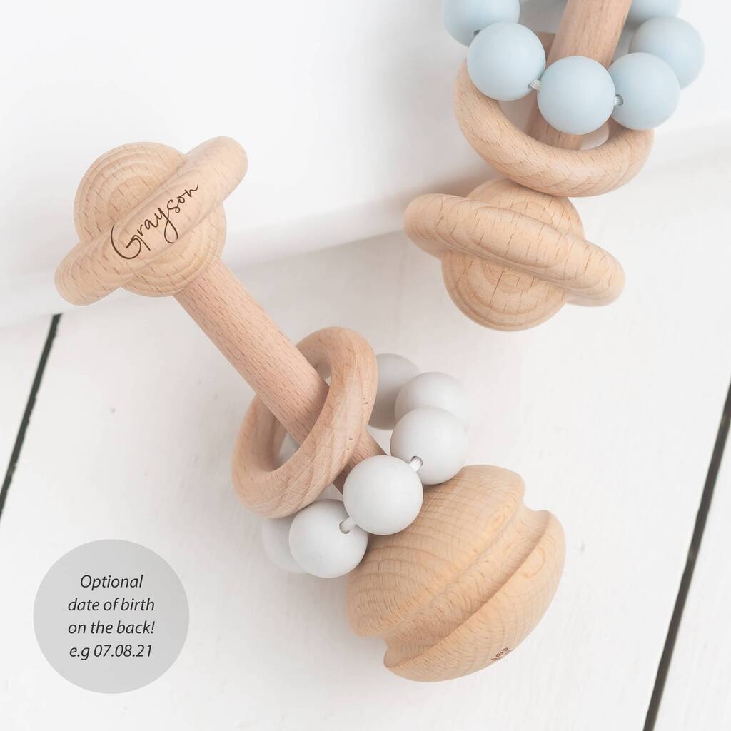 Bambino Eco Friendly Wooden Grey Rattle Teething Toy
